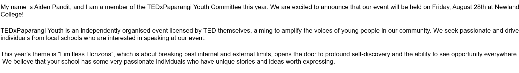 TED TALK OPPORTUNITY