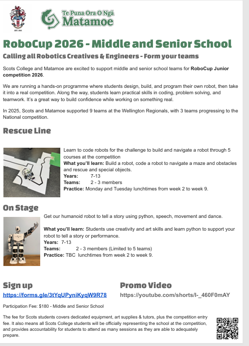 There are still spaces available in the competitive and social teams for both boys & girls. If you are interested in playing badminton this term, please see Mr Lucas in Room 16 or email lucasb@scotscollege.school.nz